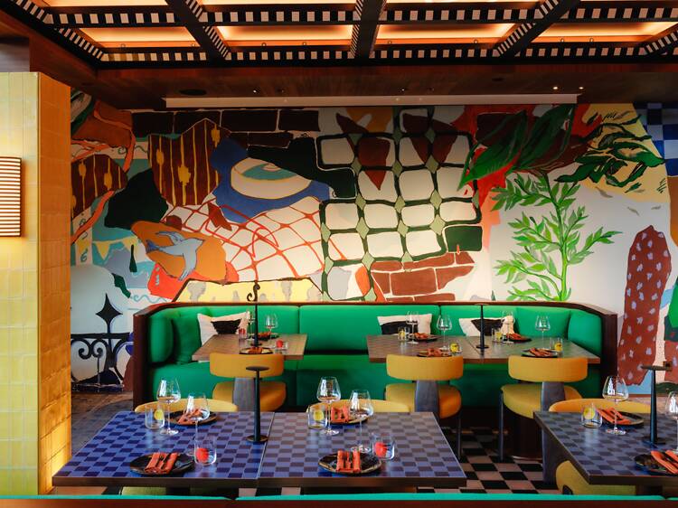 Assim que entramos, os nossos sentidos são tomados de assalto. A música é animada, a decoração exuberante. As plantas percorrem todo o espaço, tal e qual uma selva urbana, e há cadeiras e mesas com diferentes padrões, além de sofás de cores garridas. O destaque, ainda assim, vai para a parede do fundo da sala que, bem colorida, está pintada de animais, plantas e folhas verdes, e formas e elementos que remetem para a restante decoração. É assim que se apresenta o restaurante Luzzi. Fica no sexto andar do novo hotel Andaz Lisbon, do grupo Hyatt, inaugurado a 11 de Março em plena Baixa Pombalina.