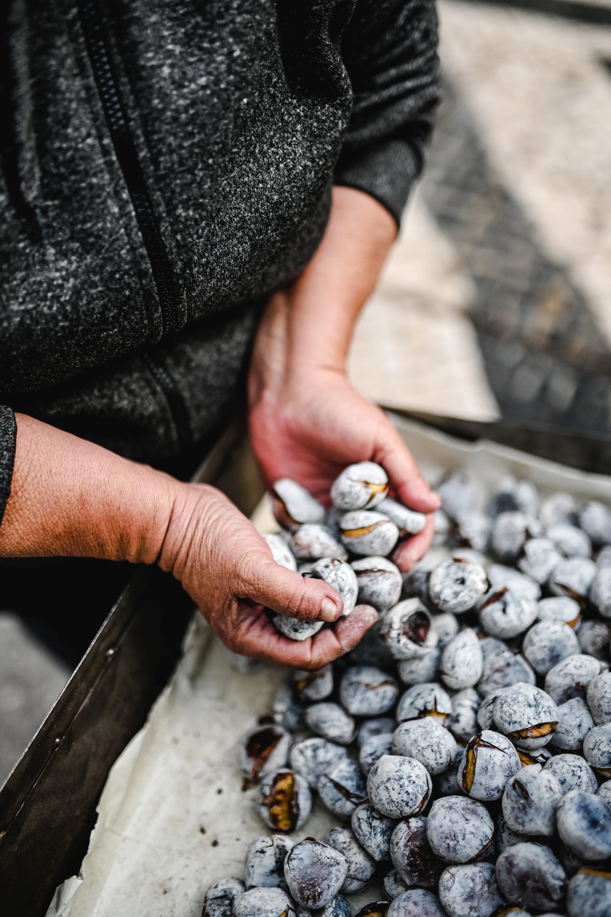 Maria Irene tem igualmente um contributo só seu para dar às ruas da cidade: além das castanhas e dos gelados, quando chega o tempo delas, vende também cerejas que chegam de uma quinta sua no norte do país. Não é agora. Agora, é tempo de voltar a agitar o assador, que está a crepitar. Lá dentro, mais do que um simples fruto seco, está, para muitos, um sabor de infância associado à chegada do frio, está uma certa nostalgia e está um momento de partilha entre gerações. O Outono não seria o mesmo sem castanhas assadas.