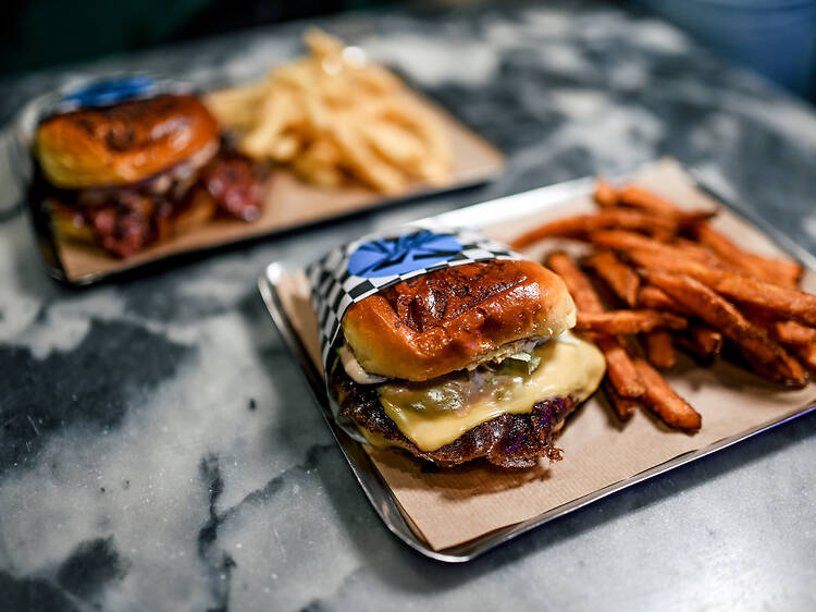 Mas se já existem tantos sítios de smash burgers na cidade, porquê então abrir mais um? “O smash burger está super na moda. Além disso, queria focar-me num único produto, porque assim é mais fácil de controlar tudo – como o custo e desperdícios”, explica a responsável. O espaço foi-lhe passado por uns amigos; a decoração, composta por elementos escuros e pormenores em mármore, como as mesas e o tampo do balcão, foi pensada com a ajuda de um designer.