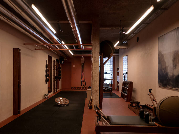 O que vemos da rua é, no mínimo, intrigante – uma sala pintada de terracota, pranchas de surf alinhadas e um balcão que se assemelha a uma cafetaria. Mesmo depois de entrarmos, nada nos diz que forma óbvia que estamos num ginásio. Mas estamos, só que num ginásio muito à frente.