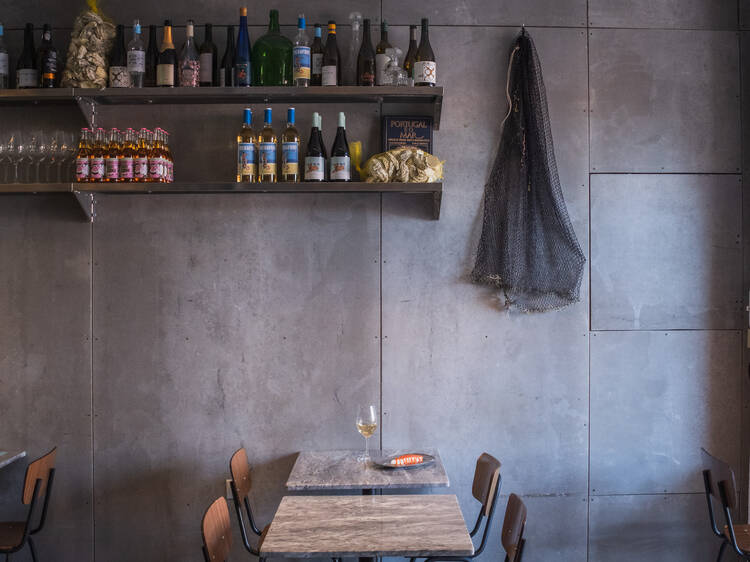 No Campo de Santa Clara, o Almadrava tem uma belíssima esplanada voltada para o Tejo e o Panteão Nacional. A localização marca o ritmo do jantar, com a luz a mudar ao longo da noite, visível tanto do exterior como através das portas envidraçadas da sala. Este é o segundo projecto de Frederico Frank e Rodrigo Braga, dois brasileiros ligados à cozinha portuguesa, que dividem funções entre cozinha, gestão e sala. O espaço, onde durante décadas funcionou uma casa de bifanas e mais recentemente um restaurante vegetariano, foi renovado com inspiração numa peixaria, tendo uma carta centrada em peixe e marisco.