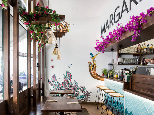 A Margarita nasceu em Outubro de 2018 como uma declaração de amor de José Machado, venezuelano, que veio para Portugal por uma paixão pendente do lado de cá do Atlântico. Por ali, o tema é pizza e cocktails. Ao todo, são 15 as opções na carta para comer, uma delas vegan. Há carbonara (9,90€), ricotta e espinafres (9,60) ou fresh margarita (8,90€), uma variação da bandeira da casa com molho de tomate, mozzarela fresca de bufala campana e manjericão.