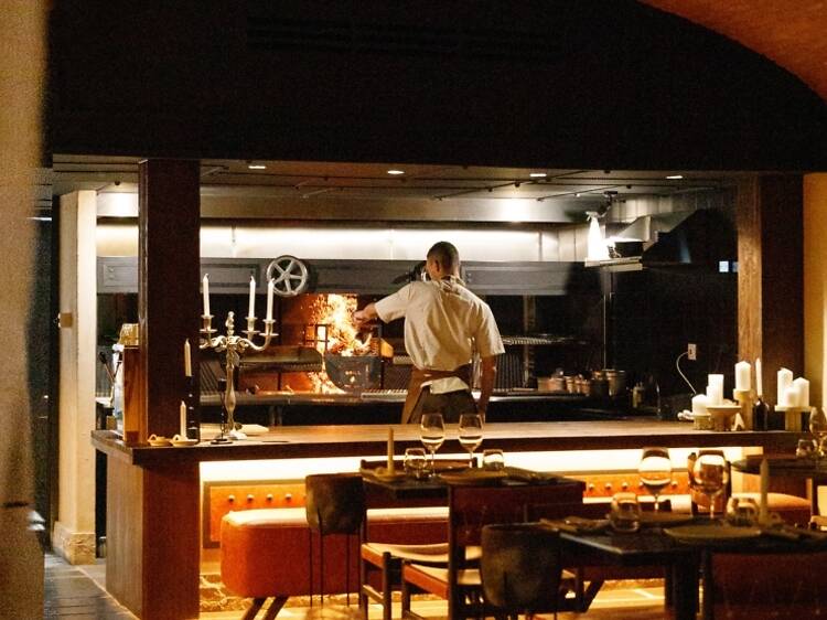 O Grupo do Avesso desce do Porto até Lisboa com uma parrilla acesa todo o dia, por onde tanto passam grandes cortes de carne como um bikini trufado – “uma tosta mista em esteróides” – ou uma bola de Berlim. O restaurante, dentro do hotel Inspira Santos mas com entrada independente, conta com três salas, incluindo a que tem um pequeno balcão à frente do fogo, com dois bancos de cavalo, para assistir de perto e em directo à preparação dos pratos (quem sofrer de calores, é melhor reservar outra mesa). A carne é a protagonista, com propostas que vão da bavette (um corte bovino nobre e suculento, da parte inferior do lombo), ao lomo bajo ou ao chuletón, para acompanhar com coleslaw, puré de batata trufado ou o muitíssimo recomendável arroz de forno – que também tem lugar nos pratos principais numa dose maior e acompanhado de secretos de porco preto.