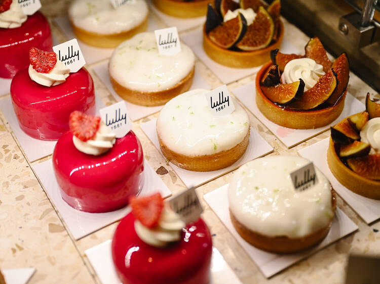 O cheiro a pão e bolos toma conta deste troço da rua. Há quase dois anos que esta padaria e pastelaria francesa se tornou paragem de rotina nos Anjos. Uns vêm pelo pão, de fermentação lenta e feito na cozinha de produção, no Beato, com farinhas biológicas vindas de França. Outros chegam atraídos pelos bolos e croissants de aspecto irrepreensível. Há quem venha ainda pelo café, já que todas as semanas há novos blends a chegar à Lully 1661. Interessa saber que aqui se come a praticamente todas as horas do dia. Pode entreteter-se com as sanduíches de comté e fiambre francês ou com canelé, pequeno bolo fofo de crosta estaladiça, feito com rum, típico de Bordéus.