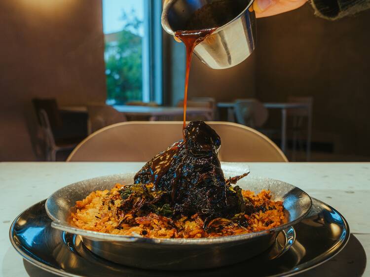 A proposta não é nova para a restauração lisboeta, nem para Bernardo Agrela, que por sua vez também não é novo nesta casa, que reabriu no final de Setembro de 2025. Depois do pop-up na altura da pandemia, durante a primeira vida da Casa Capitão – quem lá esteve dificilmente esquecerá as bolas de Berlim recheadas com língua de vaca estufada –, o chef volta com Mesa, projecto assente em duas cartas: as sanduíches, que também são servidas no bar, e uma ardósia com inscrições voláteis, onde interpreta receitas tradicionais portuguesas, constrói pratos a partir de ingredientes-estrela e reaviva memórias pessoais. Aos sábados há cabidela.