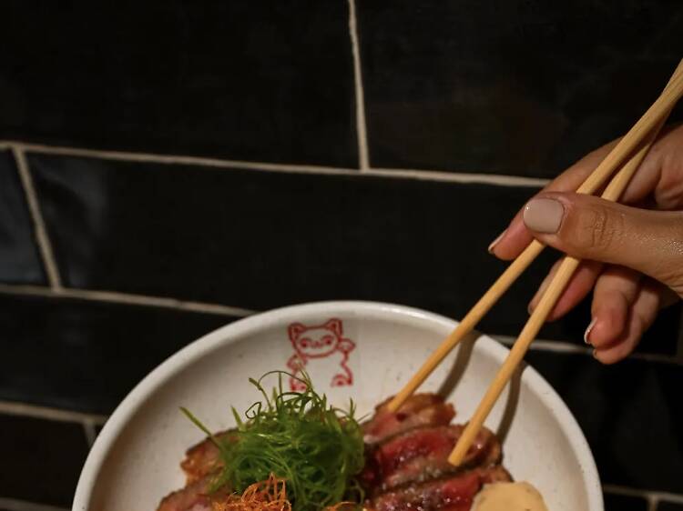 O Afuri, no Chiado, fechou portas para se transformar. O Japão tradicional dá lugar a uma versão cosmopolita e frenética, inspirada em Tóquio, mas a carta preserva bestsellers como o ramen. A tarefa pode ser dura: escolher entre as novidades e as heranças (ou arranjar espaço para provar tudo). Há duas entradas do Afuri que se mantêm no menu do Stage 35: o Chef Special (8 peças de sushi), com pasta de salmão, robalo braseado e batata doce em cabelo de anjo frita, muito usada na gastronomia japonesa; e o Crispy Egg com ovos de ramen panados com molho picante, chicória e vinagrete de shio. As novas apostas chegam, por exemplo, na forma de donburis, as estrelas da carta – bowls de arroz servidas com carne, camarão, salmão ou tofu. Um dos mais pedidos é o Steak Don: à base de arroz japonês, junta-se novilho, uma gema de ovo corada em soja, cebolete, batata cabelo de anjo e relish de gengibre. Os baos têm um carimbo personalizado do gato da sorte, o protagonista da nova marca e nas sobremesas vai encontrar a Janoffee, uma tartelete com praliné de amêndoa, caramelo de miso salgado e creme de banana, e o Choux au Craquelin, com massa choux, morangos e creme de baunilha, servido com chocolate quente e molho de sésamo. A massa é tão leve que quase se derrete na boca.