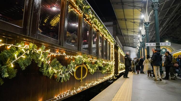 Comboio Histórico a Vapor parte do Porto, iluminado, em direcção à maior árvore de Natal do país